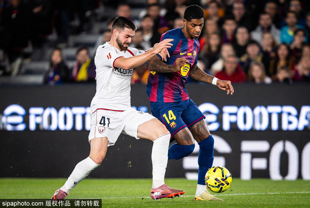 第86分钟,巴萨扩大领先优势!孔德右路突破下底后传中,奥萨苏纳后卫布雷通斯解围失误,跟进的拉菲尼亚轻松推射空门得手,巴萨2-0锁定胜局。
